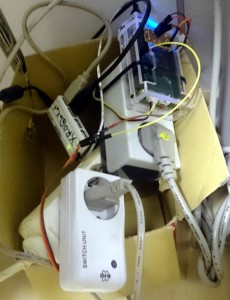 | GoLightCtrl | licht.realraum.at | RaspberryPi serving http://licht.realraum.at/switch.html site and sending action/rf433/sendcode3byte mqtt messages. Listens to topics like action/GoLightCtrl/basiclight1 Sits on top shelf next to beamer in LoTHR. Connected to Ceilinglightcontrolbuttons. | LAN mqtt.realraum.at DNS provides HTTP licht.realraum.at | |